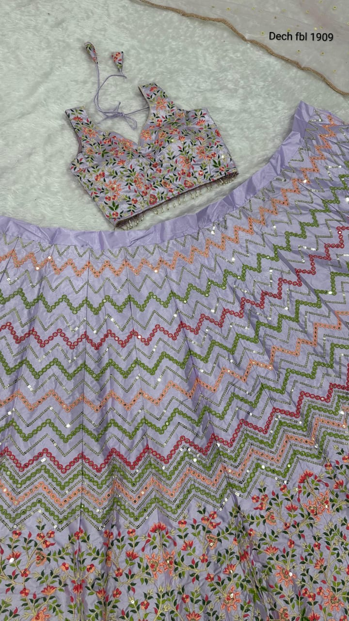 ⏭️ Heavy satin silk lehenga with sequins & thread work